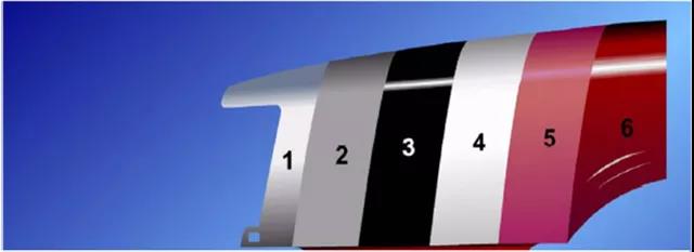 (4)中涂膜 (5)色漆膜(6)清漆膜